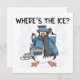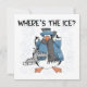 A penguin dressed in a blue coat, hat, and scarf carries her ice skates and asks "Where's The Ice?". This cute penguin ice skater design on T-shirts, cards, mugs, tote bags, and other items is perfect for figure skaters!