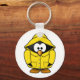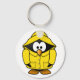 A cute penguin all set for the rain dressed in a raincoat. This penguin in a raincoat is so adorable. The raincoat is yellow and you can see the big penguin eyes under the hood. This design looks great on this keychain. Perfect for yourself or as a gift