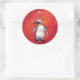 Penguin in Santa Hat on Red Classic Round Sticker