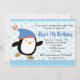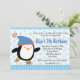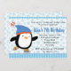 Cute penguin ice skating invitation in blue with snowflake background. For more designs, visit www.callachic.com
