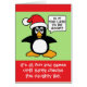Is it too late to be good? A cute Christmas penguin with a Santa hat for the Christmas Holiday Seasons. "It's all fun and games until Santa checks the naughty list "Fun and silly design with a funny saying that can all be customised. The inside of the card says "It's never too late. Eat, drink and be thankful. Merry Christmas" and it's ready for you to add any name or your family surname.