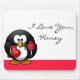 The Penguin Love Mousepad features a white background with a black and white penguin. The penguin is holding a rose in his beak and a heart-shaped box of candy under his arm. Makes a great gift for birthdays, Christmas, Valentine's Day and other special occasions. Customise the design and the text.
