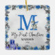 Penguin Monogram Baby Stats First Christmas Ceramic Ornament