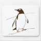 A Mouse Mat features a simple line drawing of a Gentoo Penguin. The penguin is black and white with an orange bill and feet. A lovely addition to the office or computing space.