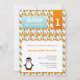 A modern Penguin Party Invitation featuring a penguin illustration and a colourful geometric background. Perfect for a child's birthday or Winter party.