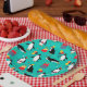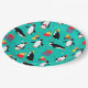 Part of the Penguin Party collection, fun penguins celebrating a birthday party, turquoise background.