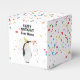 A cute illustration of a penguin partying and having fun! Penguin wearing a party hat and blowing party horn with confetti raining down on it. Let the celebrations begin! Perfect for anyone who loves funny animal illustrations. Ideal birthday party favour box. Customise the occasion and name and make it your own.