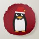 Penguin Penguins Merry Christmas Red Santa hat Tux Round Cushion