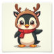 A vintage cute cartoon playful little baby pesto penguin wearing reindeer costume, kawaii. Big anime eyes. The background is solid white