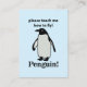Penguin Please Teach Me How To Fly Funny Penguin Business Card