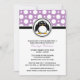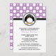 Stylish and cute Baby Shower invitations designed in a purple and white assorted polka dots pattern, with an adorable little rounded black penguin, and custom printed with your celebration details.