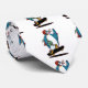 A funny cartoon illustration of a penguin on a skateboard, doing an ollie. A funny design for kids, or anyone who loves to ride skateboards. This cute penguin is wearing a helmet and safety pads.