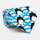 This unique animal design contains a cute cartoon penguin with a blue and white background.
