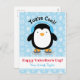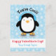 Cute penguin postcard, perfect for kids valentine's day card exchange.