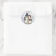 This cute penguin couple are ready for their wedding day. He looks elegant in his top hat and she is sweet in her rose accented bridal veil. Delightful wedding Save the Date seal for your special day. Customise name and wedding date text.