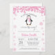 Penguin Winter Girl Baby Shower Snowflake Invitation
