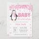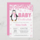 Penguin Winter Pink Girl Baby Shower Snowflake Invitation