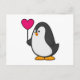 Penguin with Heart Balloon Postcard