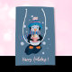 A cute blue Holiday gift bag featuring a cartoon penguin sipping on a cup of hot cocoa . The text reads "Happy Holidays" , but you alter alter it if you wish .
