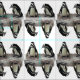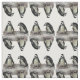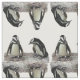 This animal fabric features a repeating abstract pattern of adorable African Penguins standing on a rocky ledge viewing their reflections. They are aquatic, flightless birds whose wings have become flippers. Each has a black stripe and black spots on the chest. The pattern of spots is unique for every penguin, just like human fingerprints. They have pink glands above their eyes and pink and black feet.