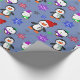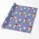 Adorable red, green, purple, blue snowflakes and penguins festive Holiday Christmas wrapping paper.