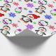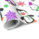 Adorable red, green, purple, blue snowflakes and penguins festive Holiday Christmas wrapping paper.