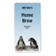 This icy cold beer bottle label features two adorable African Penguins standing on a rocky ledge. They are aquatic, flightless birds whose wings have become flippers. Each has a black stripe and black spots on the chest. The pattern of spots is unique for every penguin, just like human fingerprints. They have pink glands above their eyes and pink and black feet. They will be perfect for your home brewed beers such as lager, ale, stout, pilsner, bock, Oktoberfest, porter or weissbier. The descriptive text reads: Home Brew. All text can be customised with your special information.
