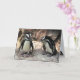 This birthday card features two adorable African Penguins standing on a rocky ledge. They are aquatic, flightless birds whose wings have become flippers. Each has a black stripe and black spots on the chest. The pattern of spots is unique for every penguin, just like human fingerprints. They have pink glands above their eyes and pink and black feet. The text can be customized for your special occasion.