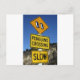 Penguins crossing yellow road sign postcard