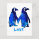 blue penguins holding hands says "LOVE"