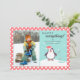 A cute Christmas card with a polka dot background and an adorable penguin ice fishing and wearing a Santa's hat. (FP)