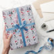 Penguins in Santa Hats Winter Scene Grey Pattern Wrapping Paper