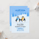 A winter-theme invitation featuring two penguins in a snowy landscape. Perfect for winter birthday parties for twins, siblings and singletons. (<a href="https://www.freepik.com/free-photos-vectors/background">Background vector created by freepik - www.freepik.com</a>). <br/><br/>The card is easy to customise with your wording, font, font colour, paper shape options and choice of six paper types.<br/><br/>Not exactly what you're looking for? All our products can be custom designed to meet your needs at no extra charge.<br/><br/>Simply contact us at askcottonlamb@gmail.com.<br/><br/>Coordinating products available: Just ask us!"