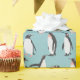 Penguins - collection of illustrated penguins with colouring of emperor and king penguins. Arranged in various poses and positions. Set on a half baked blue background.