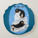 Adorable penguins napping on an iceberg while snowflakes fall around them. Can personalise this cute burp cloth with baby's name. Blue, white, and black.