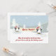 Adorable penguins dressed in red hats hold a banner inviting you to their holiday gathering. White Christmas trees and lights in a snow-covered winter scene. A perfect way to invite your guests to your home for the holidays. Personalise with your own information. If you need to move the text, or change the size, font, or colour, click Customise It. PLEASE NOTE: THIS CARD IS A 5.5 X 7.5 - YOU CAN CHANGE THE CARD SIZE IN THE OPTIONS.