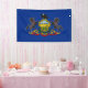 This design features the state flag of Pennsylvania, officially known as the Commonwealth of Pennsylvania. The flag was first adopted in 1778 and it features the coat of arms of Pennsylvania, an official emblem of the state. The state motto is also displayed: "Virtue, Liberty and Independence". Perched on top of the coat of arms is a bald eagle, which is intended to represent Pennsylvania's loyalty to the United States. Pennsylvania is, indeed, one of the 13 original founding states of the Union. The two most populous cities in the state of Pennsylvania are Philadelphia and Pittsburgh. The state capital, however, is Harrisburg.