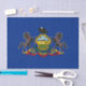 This design features the state flag of Pennsylvania, officially known as the Commonwealth of Pennsylvania. The flag was first adopted in 1778 and it features the coat of arms of Pennsylvania, an official emblem of the state. The state motto is also displayed: "Virtue, Liberty and Independence". Perched on top of the coat of arms is a bald eagle, which is intended to represent Pennsylvania's loyalty to the United States. Pennsylvania is, indeed, one of the 13 original founding states of the Union. The two most populous cities in the state of Pennsylvania are Philadelphia and Pittsburgh. The state capital, however, is Harrisburg.