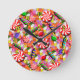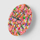 Wall clock featuring a sweet pattern of candies! This wall clock would be so fun in a candy shop! Makes a great gift for anyone with a sweet tooth, or fun in a remodelled kitchen. See it in two sizes of round clock or a square clock. With yellow numbers. Copyright Scarebaby Design.