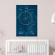 An old invention of a Penny Farthing Bicycle patented in 1887 designed for wall art on a blueprint background.