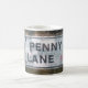 The image used in this design shows the street sign for Penny Lane, Liverpool, UK. YES, THAT’S RIGHT, the street really does exist and was made famous by the 1967 hit song written by Lennon & McCartney. The sign is painted directly on to the wall due to past problems with enthusiastic souvenir hunters