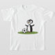 100% cotton so perfect for summer, It is a nicely designed t-shirt, the fabric is soft and the seams finished well, the body of the t shirt has no side seams. I bought a medium size for my two grandsons, aged 9 and 8 it will be slightly big on them but I would rather that than too small