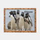 Six Penguins Walking along the ocean on the sandy beach. With a big rock and the nice baby blue sky. This floor mat has a wood floor frame . The text and text colour can be change to any colour you want it to be with the custom tag.