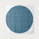 This is a Penrose tiling, a type of geometric pattern that is aperiodic, which means that it has no translational symmetry. They may however have reflection and fivefold rotational symmetry. This circular Penrose tiling is a P3 rhombus tiling with acute and obtuse rhombi. This design has a medium "M" tile density and another "style" factor gamma (g) equals 0.5. The acute rhombi are white and the obtuse rhombi are blue on a white background, there are thin black borders around each tile.