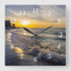 Wall clock featuring waves splashing up on the coastline during a gold sunrise at Pensacola Beach, Florida. The sun glares on the wet sand and waves. Looking for more prints or products? Feel free to visit my store: http://www.zazzle.com/timelessmomentsphtgy