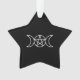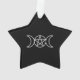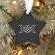 HAdd a touch of celestial elegance and mystical symbolism to your holiday décor with this striking black star-shaped Christmas ornament featuring a radiant white triple moon pentacle. This ornament seamlessly blends the beauty of pagan tradition with the festive charm of Christmas decorations, making it a meaningful addition to your tree or holiday display. The triple moon pentacle, a symbol of the goddess and the phases of the moon, represents the cycles of life, balance, and spiritual connection. Its bold white design stands out against the deep black star, creating a captivating contrast that speaks to the timeless allure of witchcraft and magick.