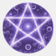 This whimsical sticker features a purple & white pentacle/pentagram watercolor print.
