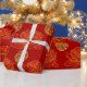 Peonies and Gold Double Happiness Symbol Pattern Wrapping Paper