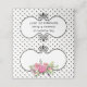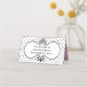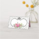 Pretty folded place card done in a black on white small polka dot pattern, with a vintage style black framed text area decorated with a lovely bouquet of pink peonies. Personalise the custom text, on the back of the card to read what you want. Personalise the front of each card, by hand, for your wedding reception.