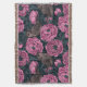 Peonies and wrens on dark grey throw blanket